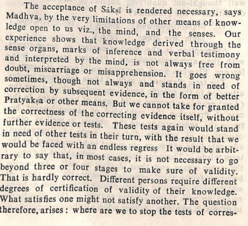 when do we accept something as real, as fact? There’s infinite regress on how we test reality or our conception of it, but eventually something must accept it as real, and that is the intuition, or the Sakshi. (p41 and 42)